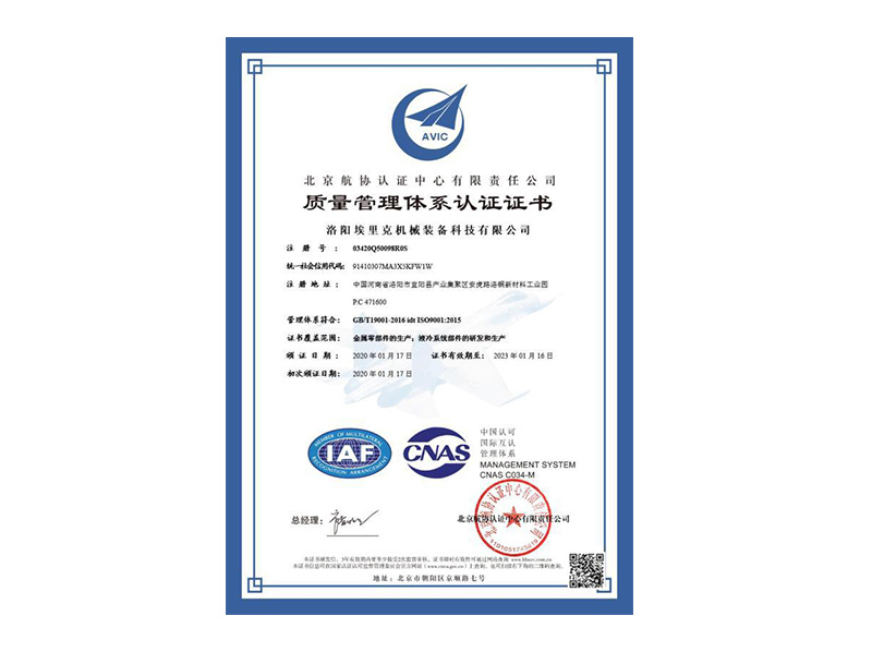 公司通過了GB/T19001-2016質(zhì)量管理體系認(rèn)證,體現(xiàn)了公司卓越的質(zhì)量控制水平和綜合競爭力。